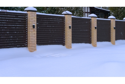 Крышка для забора жалюзи — это декоративный элемент, придает завершенный внешний вид секции. С крышкой обрезная кромка забора становиться безопасной. Элемент делает забор еще более надёжным и устойчивым к внешним воздействиям окружающей среды.